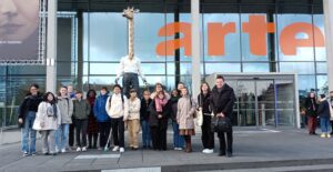 Am 21.11.2025 unternahm Herr Rösener gemeinsam mit 15 Studierenden des FTSK einen Ausflug in die ARTE-Zentrale nach Straßburg. Der europäische Kultursender und vor allem sein Straßburger Sitz sind besonders für unseren Fachbereich eine interessante Anlaufstelle, da in Straßburg die Sprachbearbeitung der Ausstrahlungen von ARTE stattfindet.