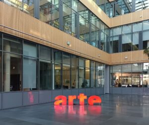In der Zentrale angekommen, wurden wir von Nicolas Beckers, dem Leiter der Sprachabteilung der ARTE-Zentrale, begrüßt. Zunächst bekamen wir eine ausführliche Präsentation über den Aufbau von ARTE und die Funktionen der verschiedenen Standorte des Senders. Durch Rückfragen und ein angeregtes Gespräch zwischen Beckers und den Studierenden wurde schnell klar, wie viel Verantwortung auf den Dolmetscher*innen, Übersetzer*innen und der gesamten Sprachabteilung liegt – denn während ARTE ursprünglich als Symbol der deutsch-französischen Freundschaft gegründet wurde, können die Inhalte des Senders mittlerweile nicht nur auf Deutsch, Französisch und Englisch, sondern auch auf Spanisch, Italienisch und Polnisch abgerufen werden. Die Sprachabteilung ist dabei nicht nur für die Kommunikation nach außen, sondern auch für das gegenseitige Verständnis innerhalb des Senders verantwortlich. So gab es im Konferenzzimmer, in dem wir die Präsentation bekamen, auch zwei Dolmetschkabinen, damit interne Besprechungen für alle europäischen Mitglieder zugänglich sind.